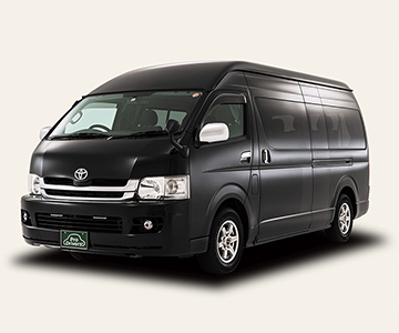 乗⾞⼈数が最⼤9名の⼤型⾞両。⼈数や荷物が多い場合などに良く利⽤されます。積載量が多く、機材などの貨物⾞としても。